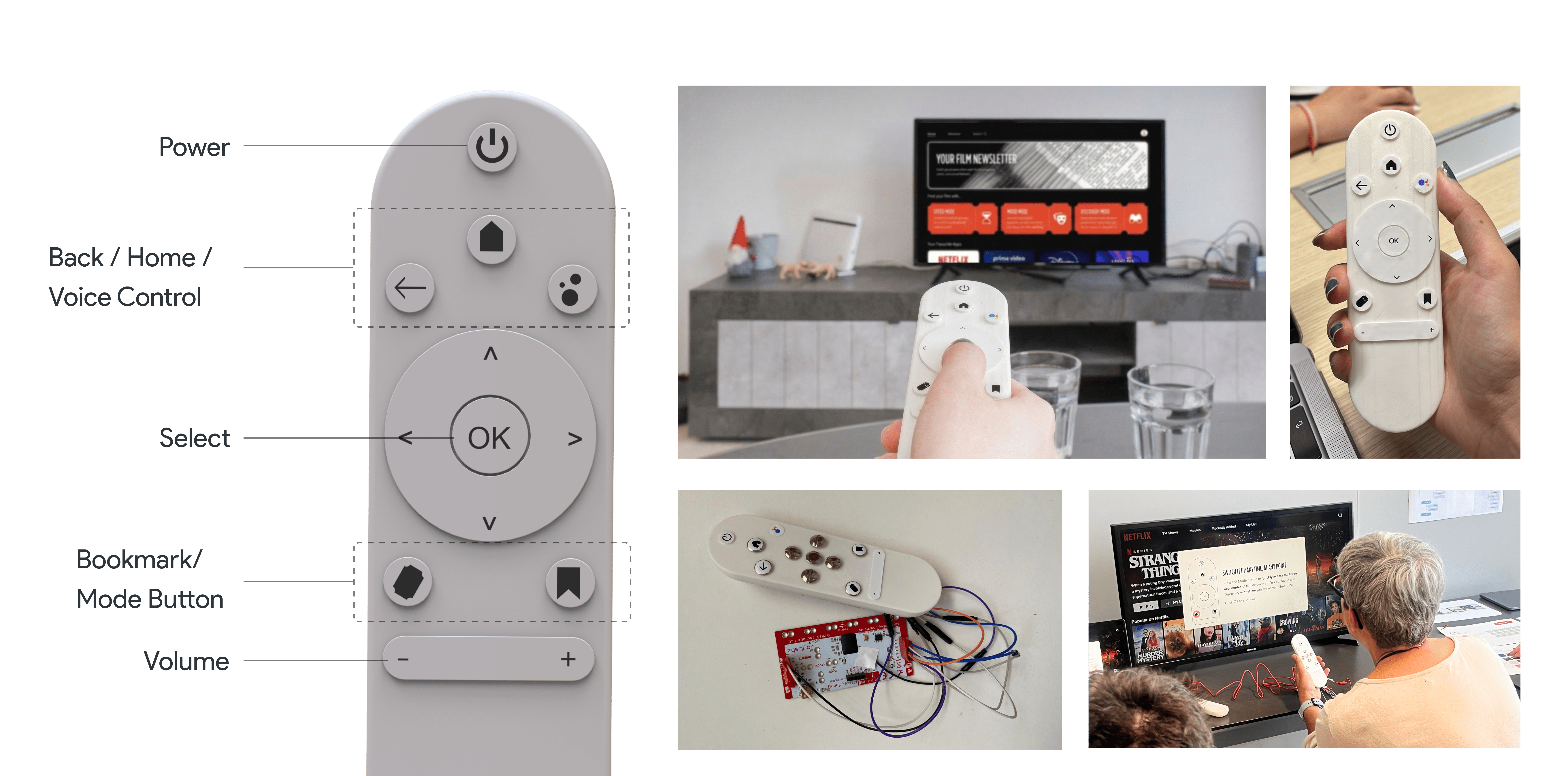 The remote introduces a dedicated mode button for quick access to different discovery paths and a bookmarking feature that allows users to save specific moments during playback. Combined with simplified directional navigation, it supports faster decision-making and more seamless interaction throughout the experience.