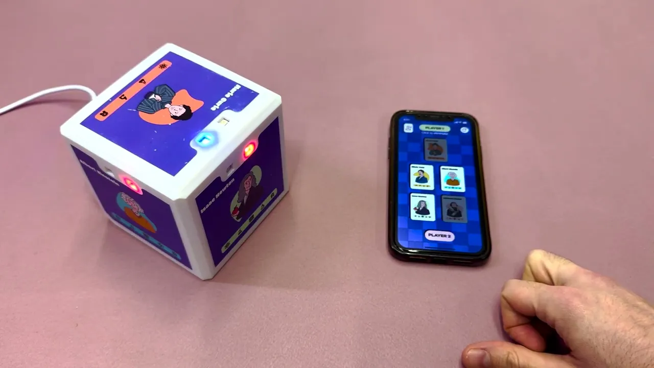 The cube was designed as the core interaction element of the game, combining physical form with embedded digital feedback. Each face represents a different character and their attributes, enabling players to engage through touch, movement, and visual cues.
