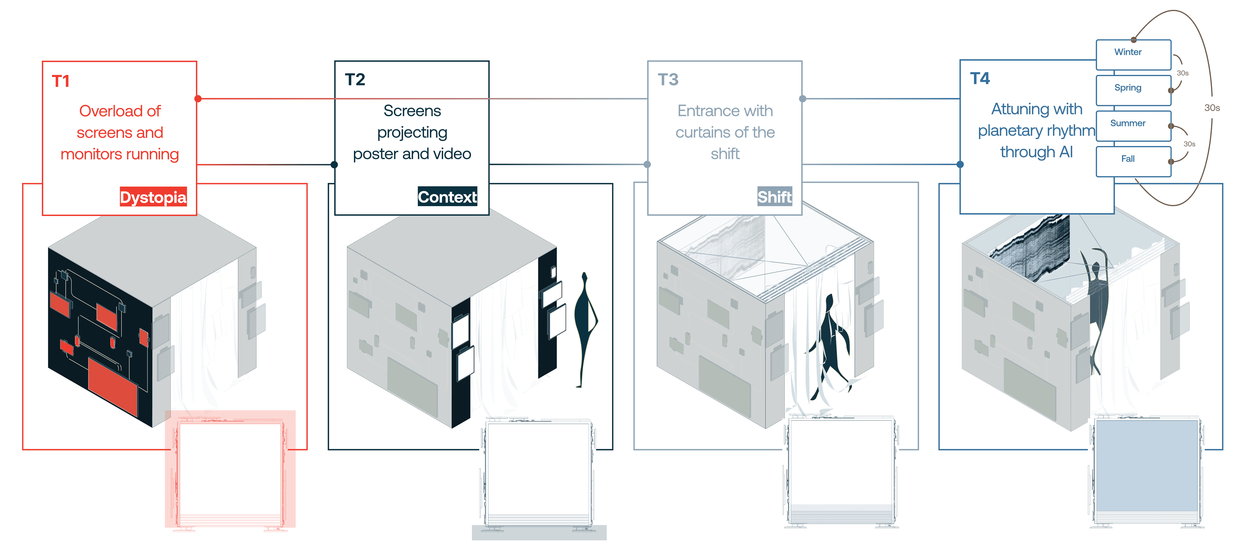 Developed as a speculative and spatial experience, the project invites users to reflect on the environmental impact of constant computation and imagine a future where intelligence operates in harmony with natural rhythms rather than against them.