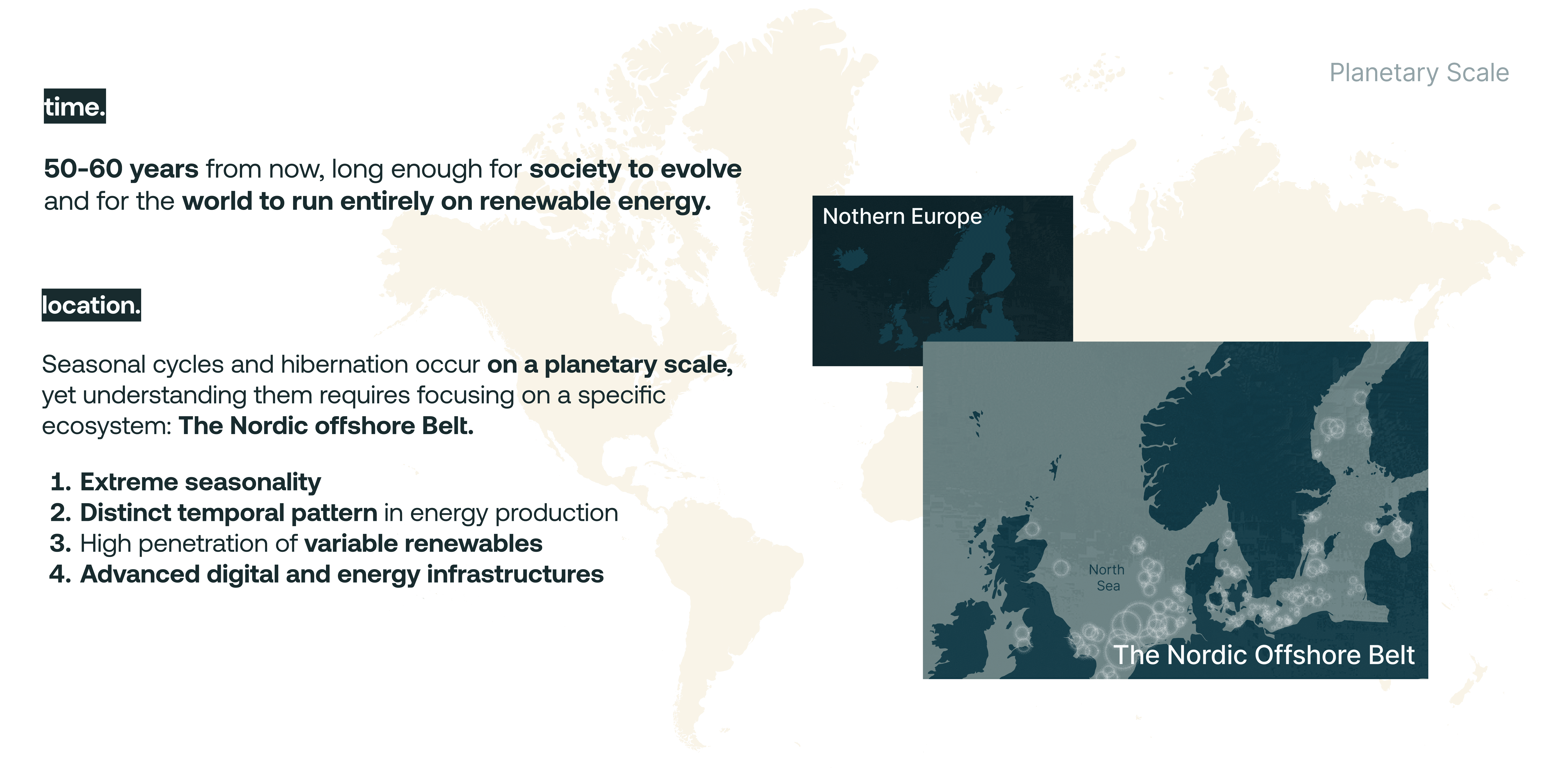 Seasonal Hibernation is a speculative design project that explores alternative ways of thinking about artificial intelligence. It proposes a system where AI operates in alignment with ecological cycles, shifting between activity and rest based on environmental conditions.