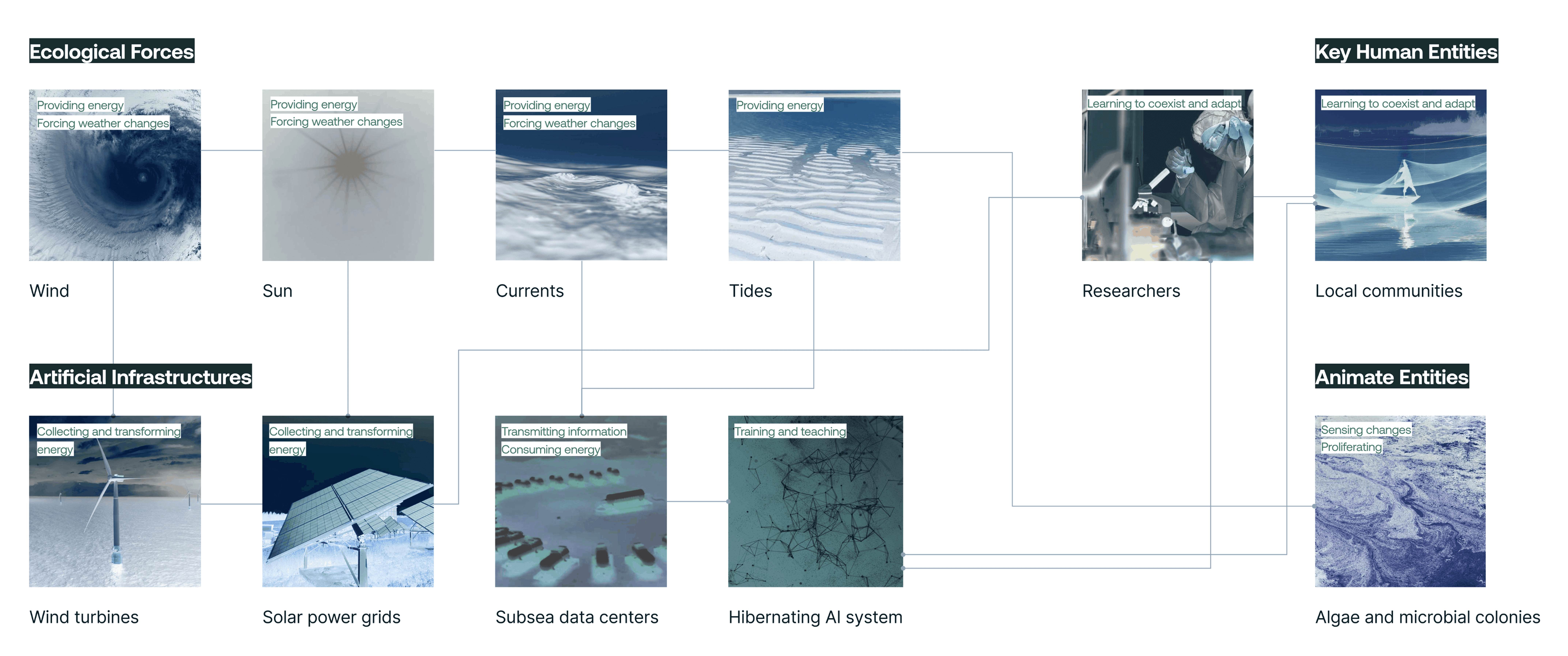 Seasonal Intelligence explores an alternative approach to artificial intelligence by rethinking its relationship with time, energy, and the environment. Instead of operating continuously, the project proposes a system where AI aligns with ecological cycles, shifting between activity and rest based on the availability of resources.