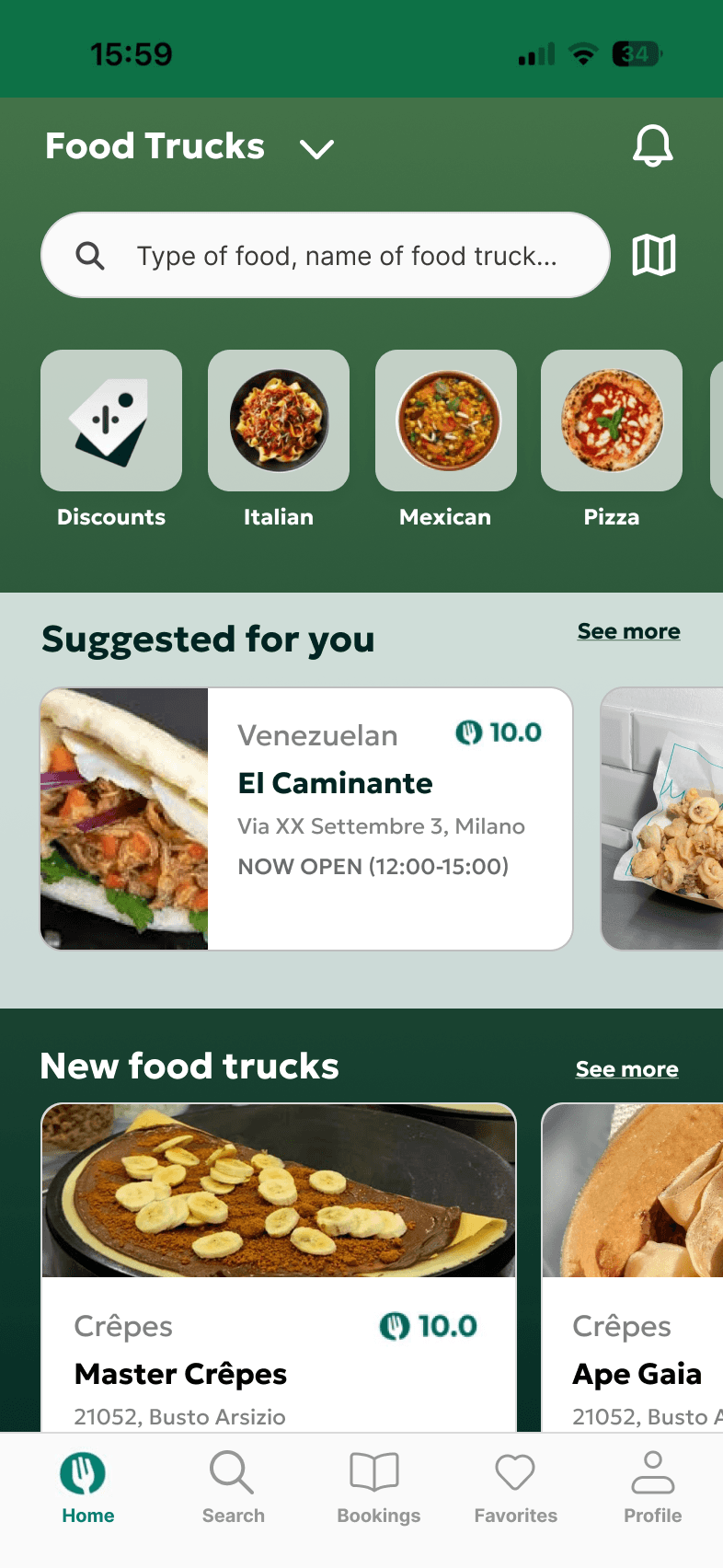 Discovering nearby food trucks that match their taste and schedule.