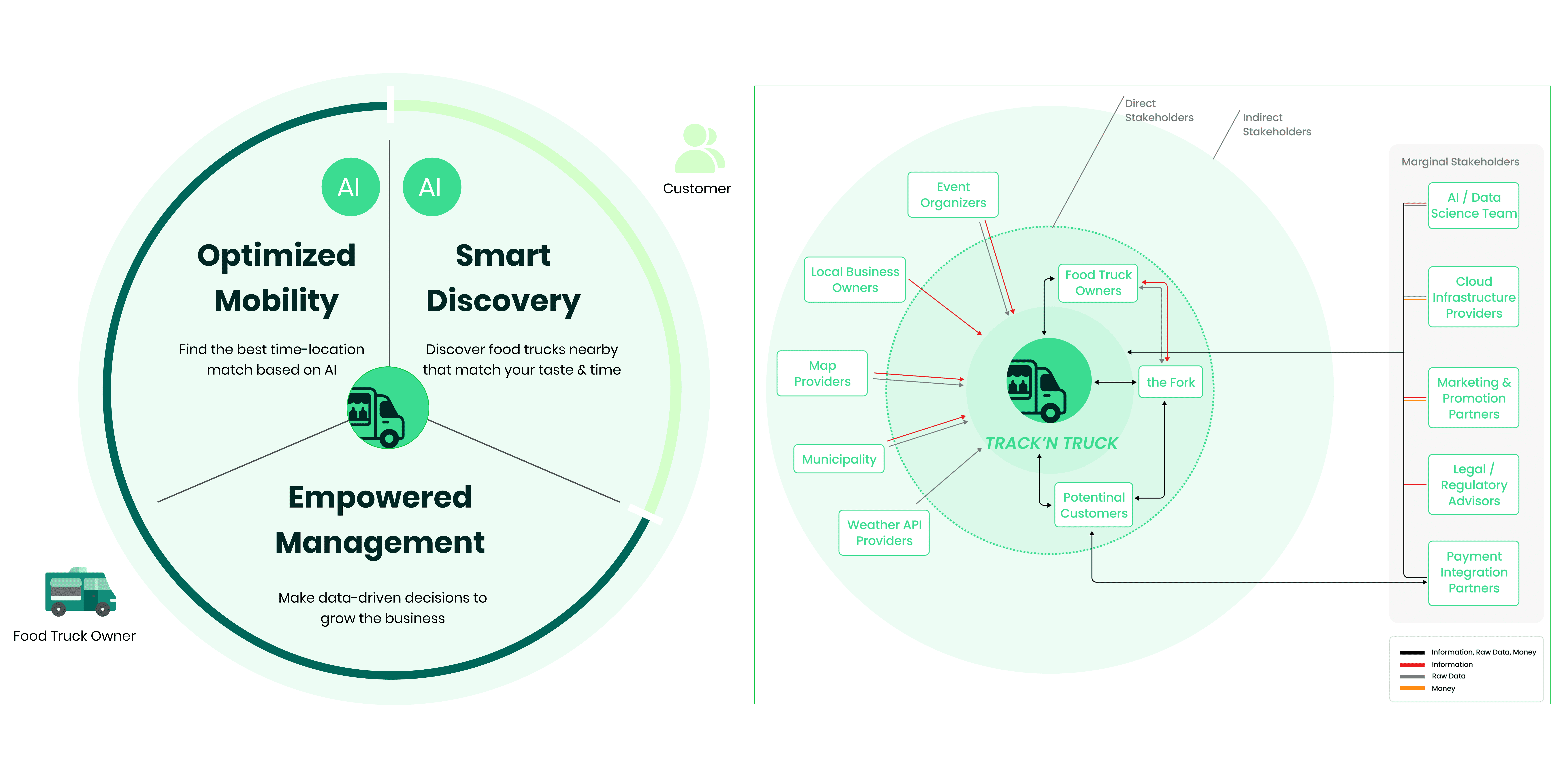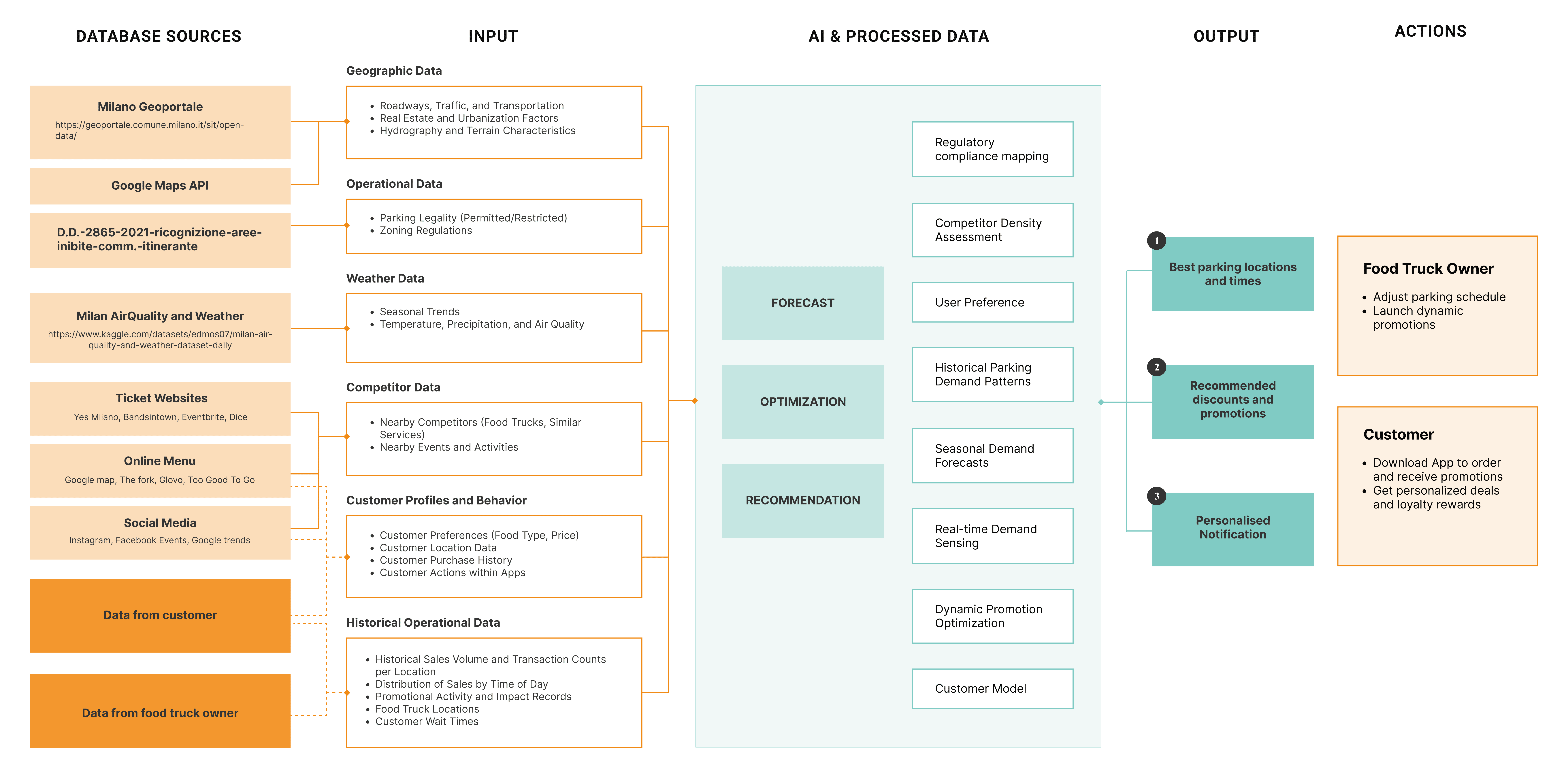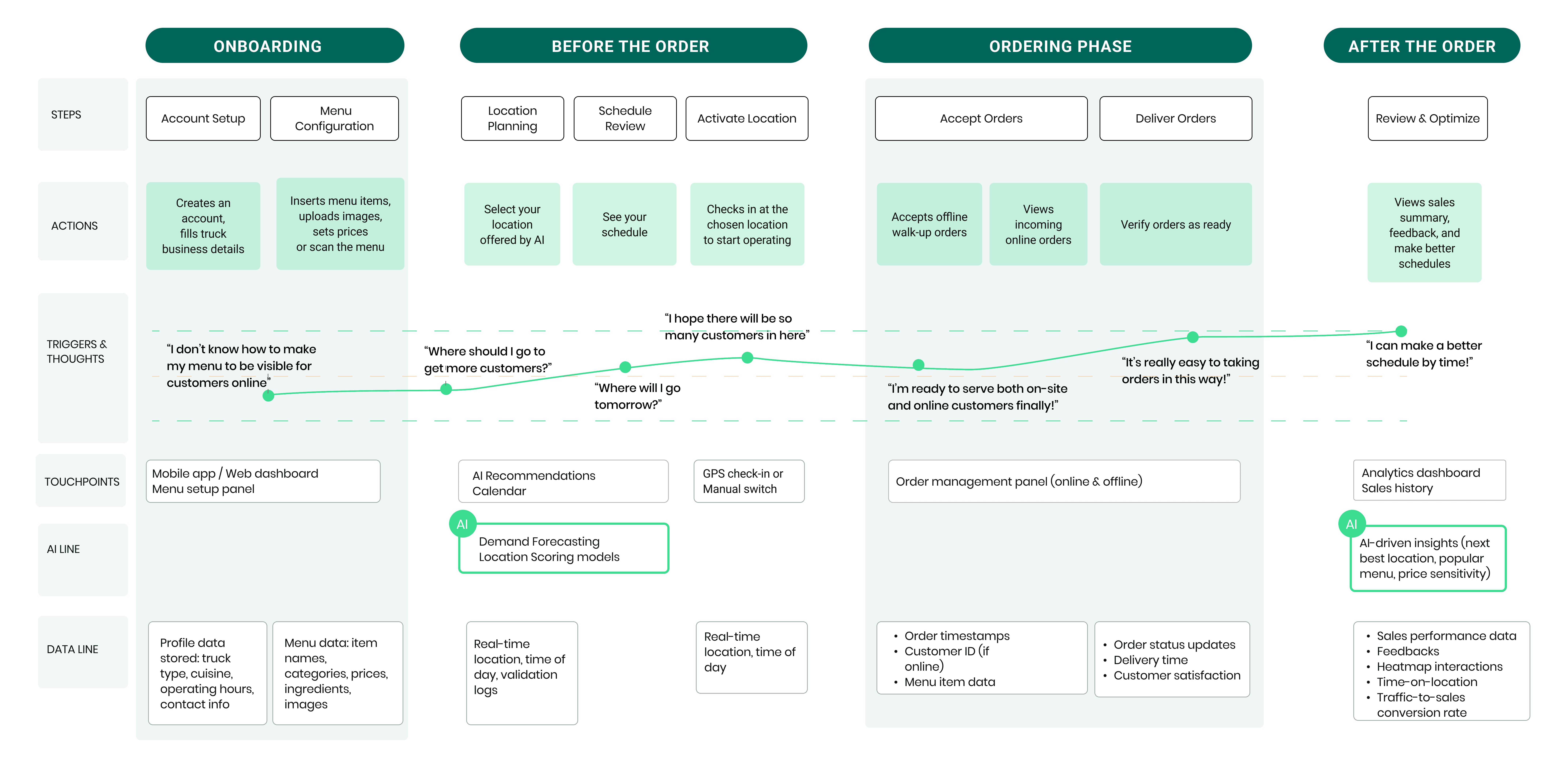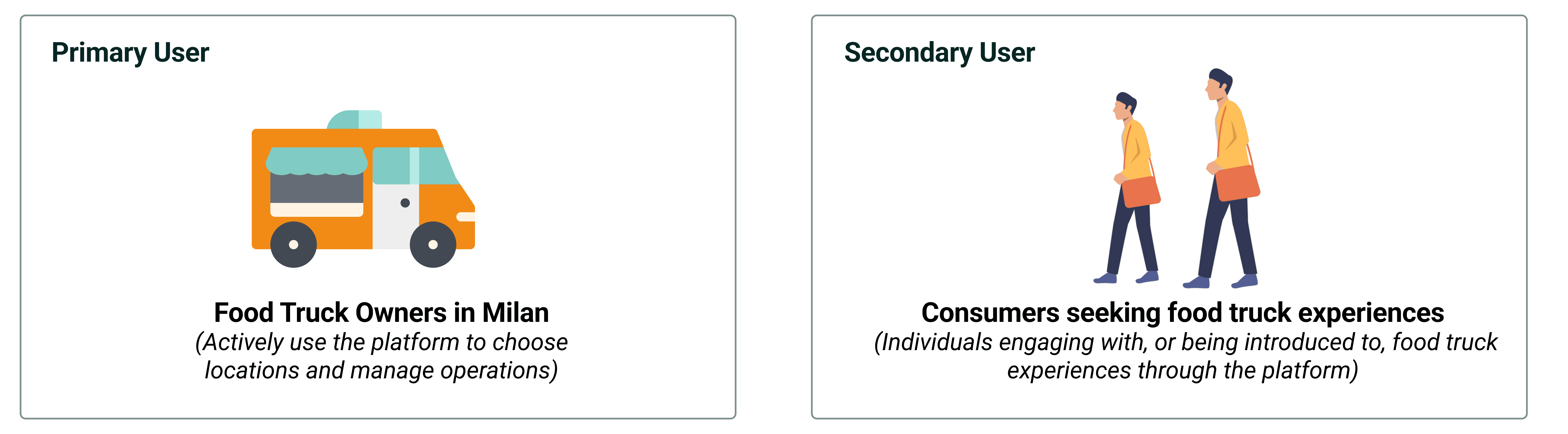 Through web scraping, we identified key insights and recognized that the problem involved two main stakeholders: customers and food truck owners.